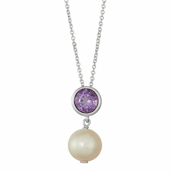 Designed with a genuine amethyst stone and freshwater cultured pearl, this necklace is simply beautiful.