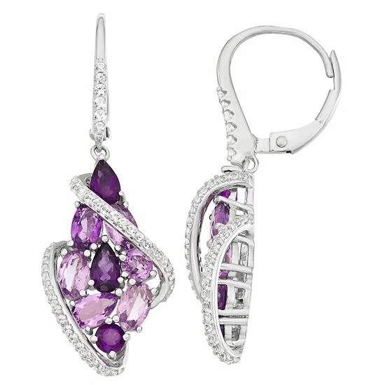 Adorned with an array of vibrant amethyst gemstones, these sterling silver earrings exude a radiant look.