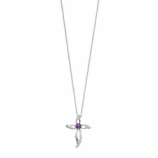 Add a touch of divine style to your look when you don this alluring amethyst and lab-created white sapphire cross pendant.
