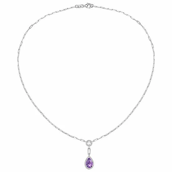 Adorned with elegant pear-cut amethyst, accented with lab-created white sapphire, this pendant necklace makes a lovely accessory you’ll treasure.