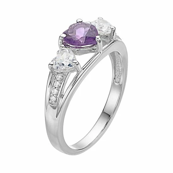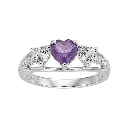 Elevate your ensemble with the lovely look of this amethyst and lab-created white sapphire heart ring.