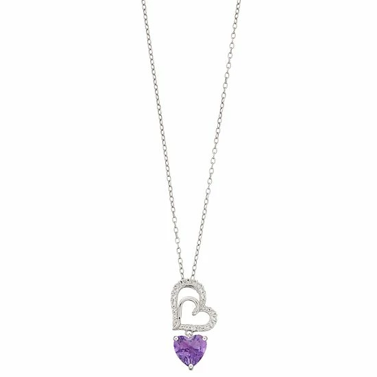 Adorned with a heart-shaped amethyst center stone and illuminating white topaz accents, this sterling silver heart pendant is sure to captivate.
