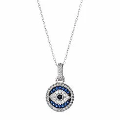 Decorated with blue glass and cubic zirconia stones, this sterling silver necklace gives your outfit a one-of-a-kind look.