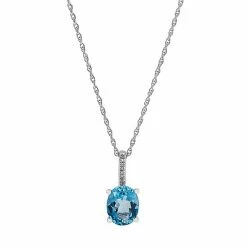 Shimmering with a blue topaz center stone and eye-catching diamond accents, this sterling silver oval pendant abounds with breathtaking beauty.
