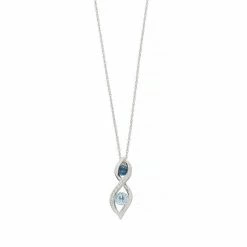Add unending beauty to your ensemble when you don this eye-catching blue topaz and lab-created white sapphire pendant.