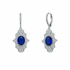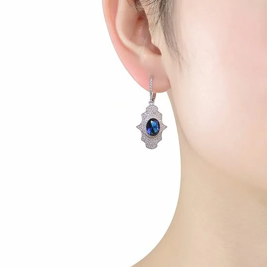 Beautiful blue and white cubic zirconia gemstones give these sterling silver leverback earrings a glamorous look you’ll love.