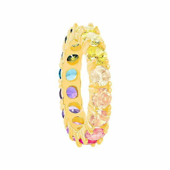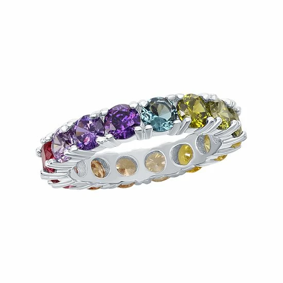 Colorful cubic zirconia stones give this eternity ring unending beauty.
