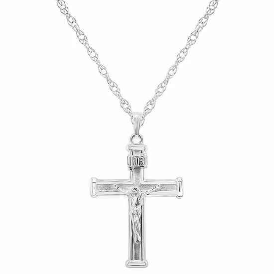 Keep your faith close to your heart when you don this sterling silver crucifix pendant.