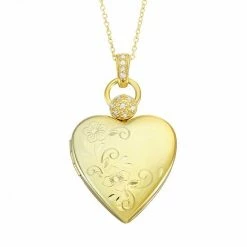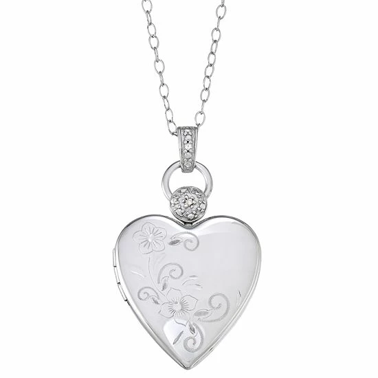 An etched floral motif and cubic zirconia accents make this sterling silver heart locket necklace a charming choice.