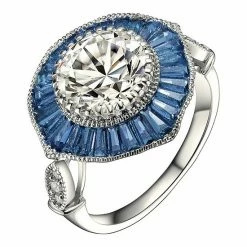 Featuring blue and white cubic zirconia gemstones set in a flower motif, this beautiful cocktail ring lends a touch of opulence to your look.