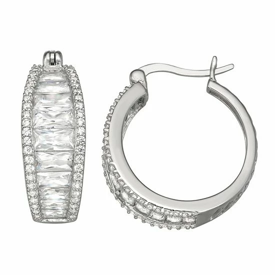 Dress to dazzle whenever you wear these sterling silver cubic zirconia baguette hoop earrings.