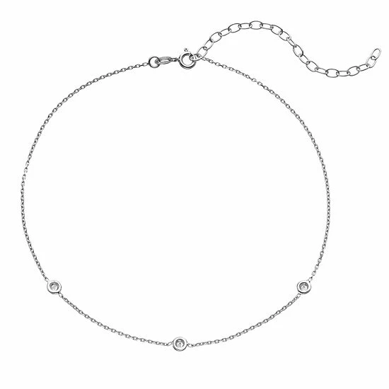 A trio of bezel-set cubic zirconia stones makes this sterling silver choker necklace a chic choice.