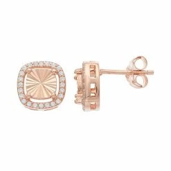 Featuring a textured center detail and shimmering cubic zirconia accents, these cushion stud earrings abound with modern styling.