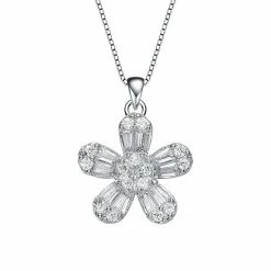 Vivid CZ baguettes and a charming flower design make this colorful pendant a must-have for any outfit.