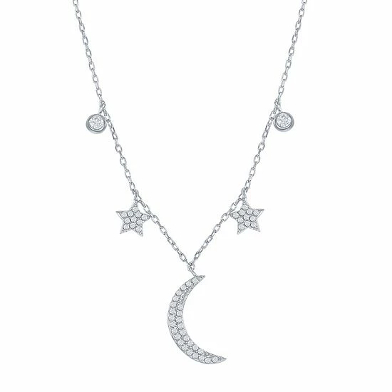 Enhance your favorite outfits with the eye-catching style of this cubic zirconia moon and star necklace.