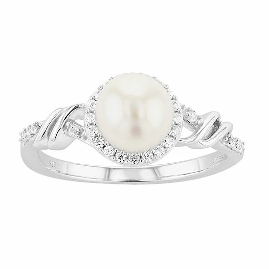 With sparkling white sapphire accents surrounding a beautiful cultured pearl, this ring is a timeless classic.