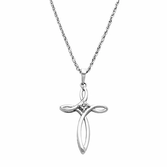 Ensure a heavenly glow when you wear this lovely sterling silver diamond accent cross pendant.