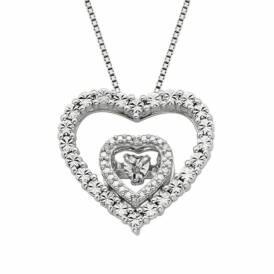 Featuring a double-heart motif decorated with dazzling diamond accents, this sterling silver pendant is truly enchanting.