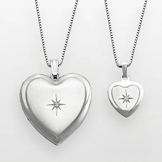 This sterling silver heart locket and pendant set is a sweet choice for you and your little girl.