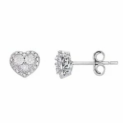 Add a hint of sparkle to any outfit with these sterling silver diamond accent heart stud earrings.