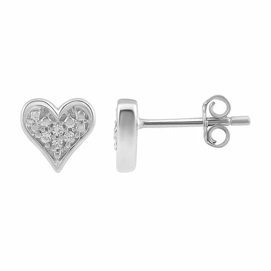 Your style will shine with these sterling silver diamond accent heart stud earrings.