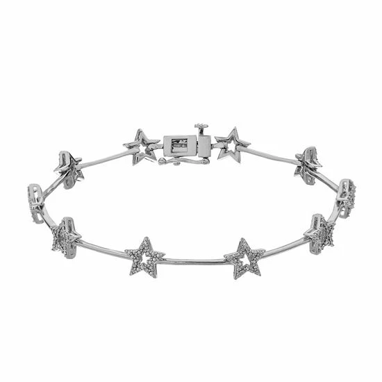 Decorated from end-to-end with diamond-accented stars, this sterling silver station bracelet is sure to be the star of your wardrobe.