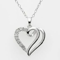 She’ll adore this delicate heart necklace. Sparkling diamond accents and a swirled heart design make this sterling silver pendant an enchanting choice. Add a pair of sterling silver earrings for an ideal gift set.