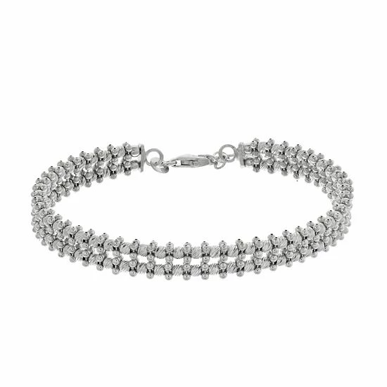 Made from two strands of diamond-cut beads, this sterling silver bracelet is an eye-catching complement to your wardrobe.
