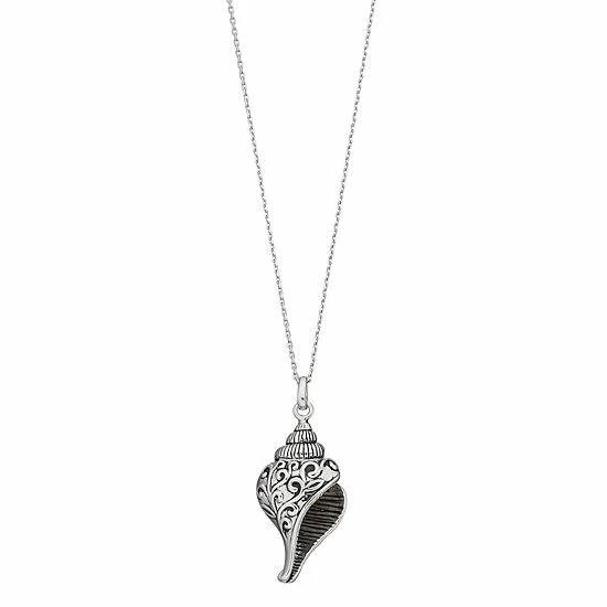 With antiqued filigree details, this seashell pendant necklace is sure to make a splash.