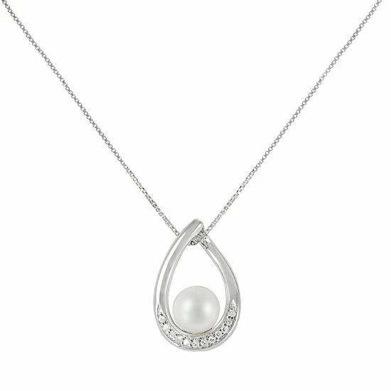 Grace and beauty. This freshwater cultured pearl and diamond accent teardrop pendant is an elegant choice. Light up all of your favorite looks with this sterling silver necklace.