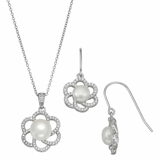 Adorned with lustrous freshwater cultured pearls and dazzling cubic zirconia accents, this sterling silver flower jewelry set provides a stylish look that’s perfect for everyday wear.
