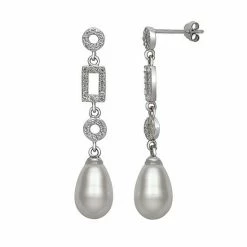 Adorned with cubic zirconia accents and drop-shaped freshwater cultured pearls, these geometric drop earrings are an enchanting pair.