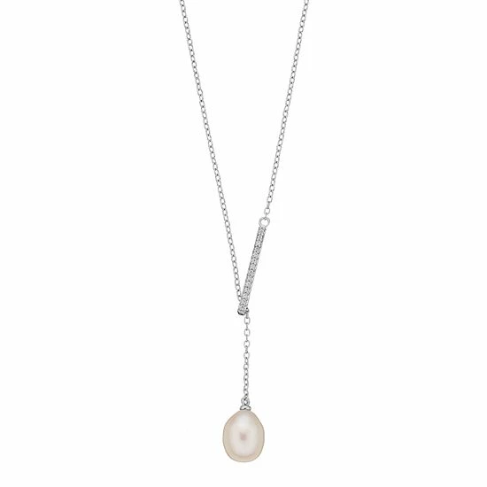 Elevate your ensemble with the distinctive style of this cubic zirconia bar and freshwater cultured pearl lariat necklace.