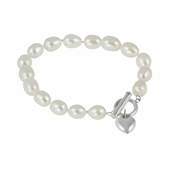 Love makes you beautiful. Freshwater cultured pearls and a puffed heart charm make this bracelet a feminine choice. Treat yourself or someone special to this sterling silver bracelet.