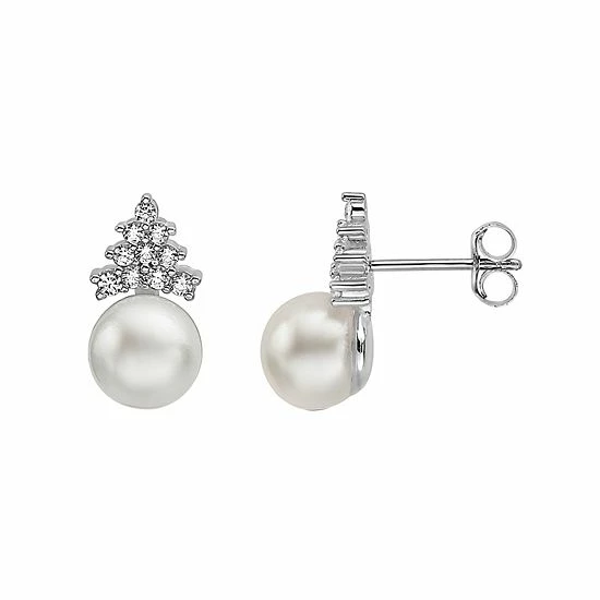 These gorgeous sterling silver freshwater cultured pearl and round cubic zirconia stud earrings are the perfect way to finish any of your favorite outfits.