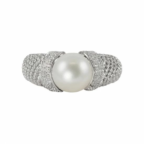Brilliant beauty. This freshwater cultured pearl ring adds a glamorous glow to any look. Make a glamorous impression with this sterling silver textured ring.