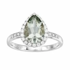 Decorated with a pear-shaped center stone and dazzling lab-created white sapphire accents, this sterling silver gemstone ring is sure to turn heads.