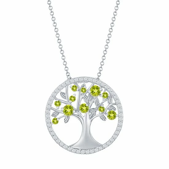 Celebrate the Tree of Life with this stunning peridot-green cubic zirconia necklace.