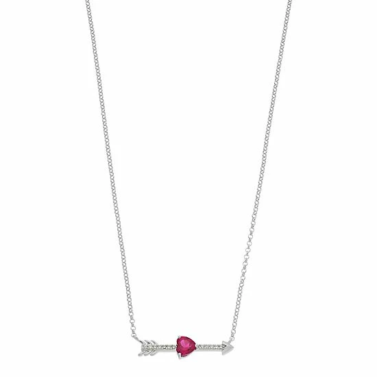 Simplify your style with this heart arrow bar necklace, featuring glittering gemstone details.