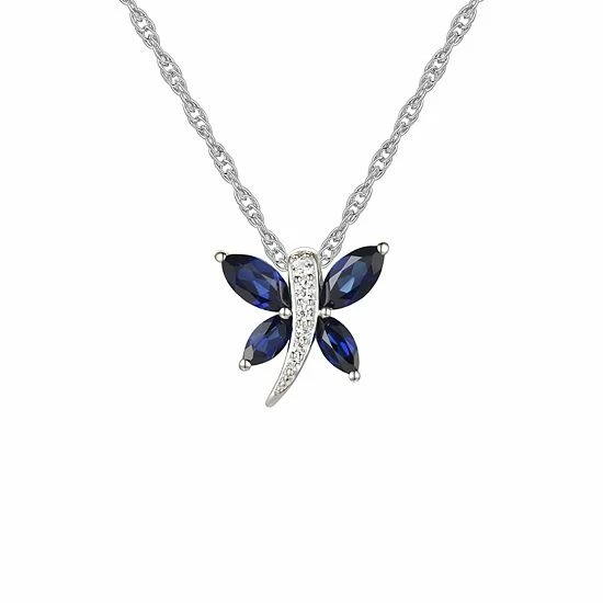 Decorated with lab-created blue and white sapphire, this butterfly pendant necklace is the perfect way to add an eye-catching finishing touch to any everyday outfit.