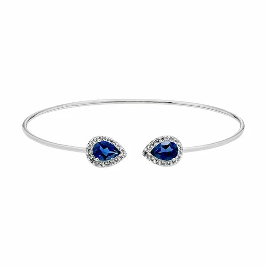 Sophisticated style abounds with this stunning lab-created blue and white sapphire halo cuff bracelet.