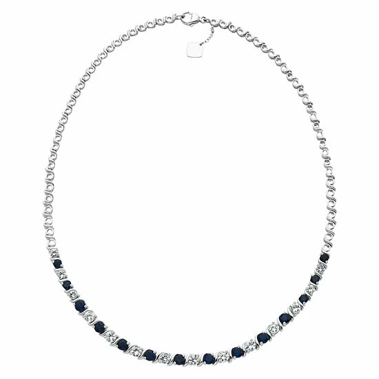Adorned with alternating lab-created blue and white sapphire stones, this sterling silver necklace conveys your elegant sense of style.