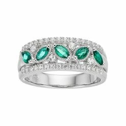 Shimmering with lab-created emerald and white sapphire gemstones, this sterling silver multirow ring offers a gorgeous glow.