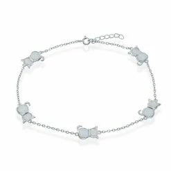 You are sure to love the adorable design of this sterling silver and lab-created opal cat pendants anklet.