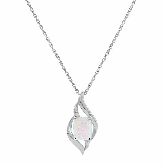 Light up your look with this sterling silver necklace. A cushion-cut, lab-created white opal gives it an eye-catching glow.