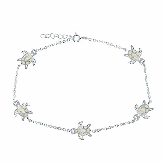 Complete your laid-back look with this charming, lab-created opal sea turtle anklet.
