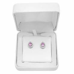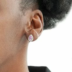 Adorned with lab-created pink and white sapphire stones, these teardrop earrings are absolutely dazzling.