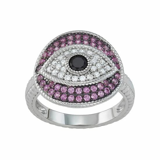 Decorated with shimmering lab-created ruby and cubic zirconia, this evil eye ring is the perfect accessory for your bold style.