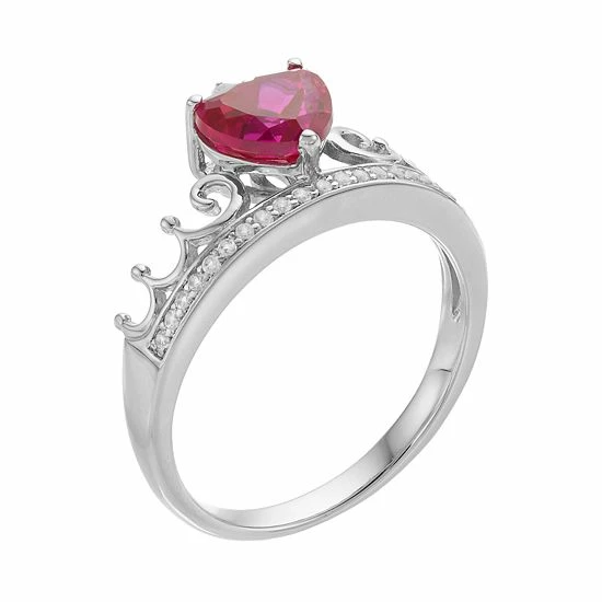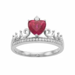 Adorned with a heart-shaped, lab-created ruby, and lab-created white sapphire accents, this sterling silver crown ring lends a regal touch to your look.