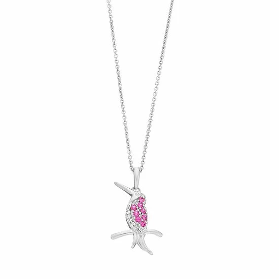Add a little sparkle to your look with this sterling silver lab-created ruby and lab-created white sapphire hummingbird pendant necklace.
